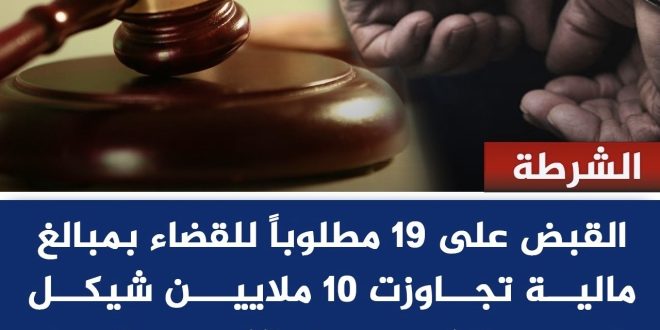 راديو موال – قبضت الشرطة القضائية في بيت لحم خلال 24 ساعة على 10 مطلوبين للقضاء بالتعاون مع إدارات الشرطة ومراكزها، ونفذت 55 مذكرة قضائية بمبالغ مالية تجاوزت 9 ملايين شيكل.