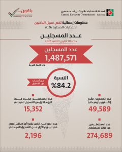 راديو موال – قالت لجنة الانتخابات المركزية إن عملية تحديث السجل الانتخابي مستمرة في مختلف محافظات الوطن وتشهد اقبالا، مشيرة إلى أنه منذ تسلمها قرار مجلس الوزراء الخاص بإجراء الانتخابات المحلية 2026، تم تسجيل (49,589) مواطنا جديدا في السجل الانتخابي إلكترونيا -عبر الموقع الإلكتروني- وميدانيا، فيما استعلم قرابة 275الف مواطنا عن مراكز تسجيلهم.